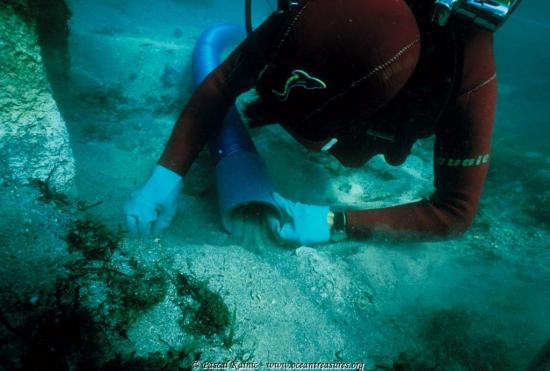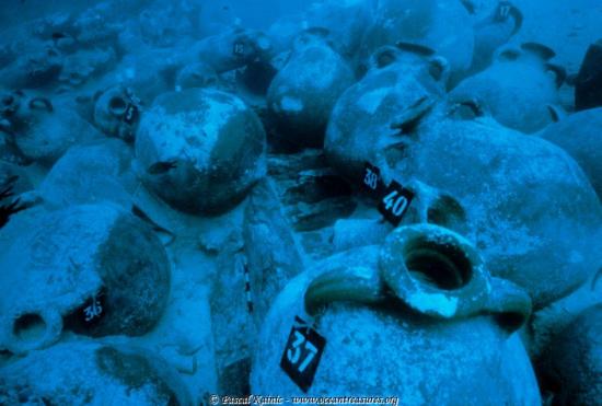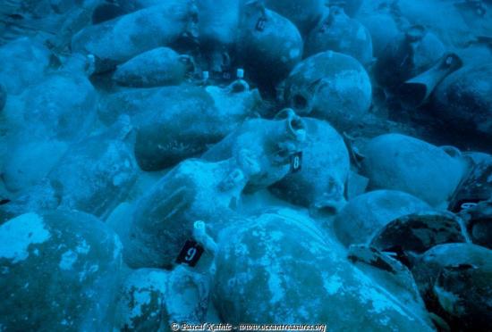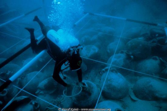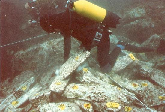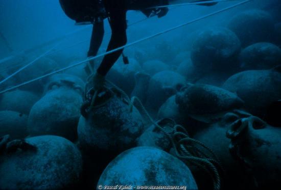 A full antique cargo of lead ingots found by archaeologists on the coast of Britanny (France)