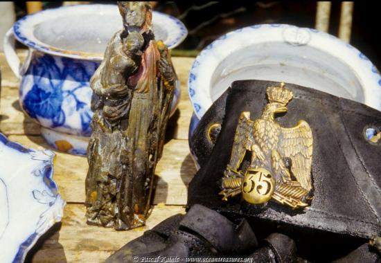 A religious artifact in lead and a leather hat with its pontifical emblema