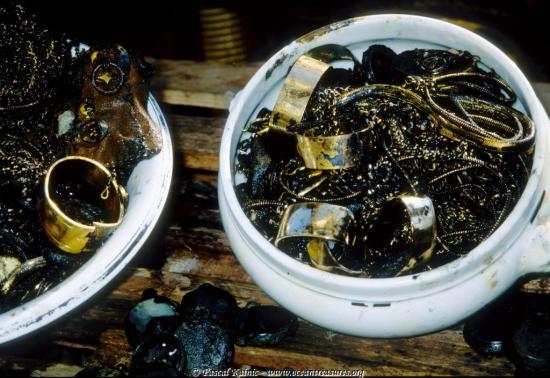 Gold & silver jewelry recovered at 2660 meters off Corsica in 1996