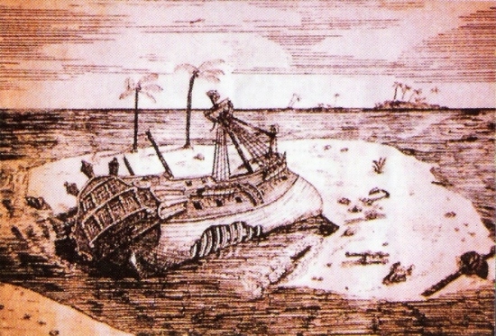 Naufrage du vaisseau le Saint Jacques (Santiago) sur les écueils Baixos de Juida