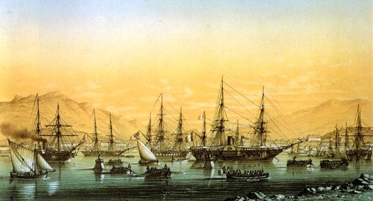 Guerre de Crimée, arrivée de la flotte au Pirée, le 26 mai 1854 (Musée de la marine)